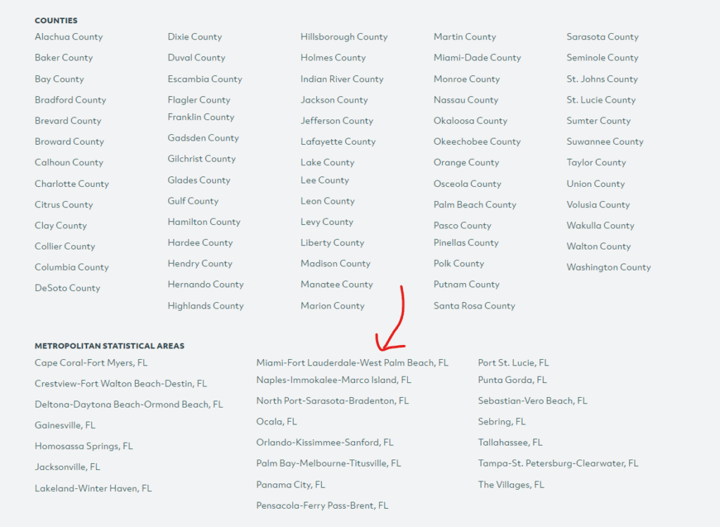 TIP (COUNTY): If you CAN’T find the city within the list, click on the “COUNTY” from the spreadsheet to quickly search for the associated County and use that when searching (see photo for clarity)